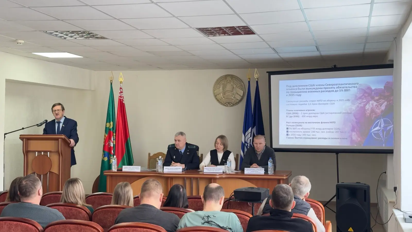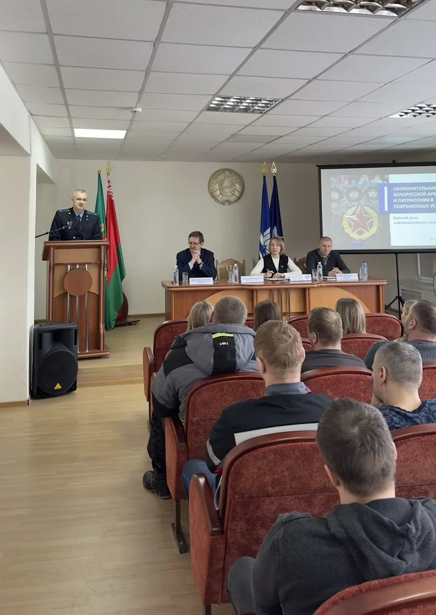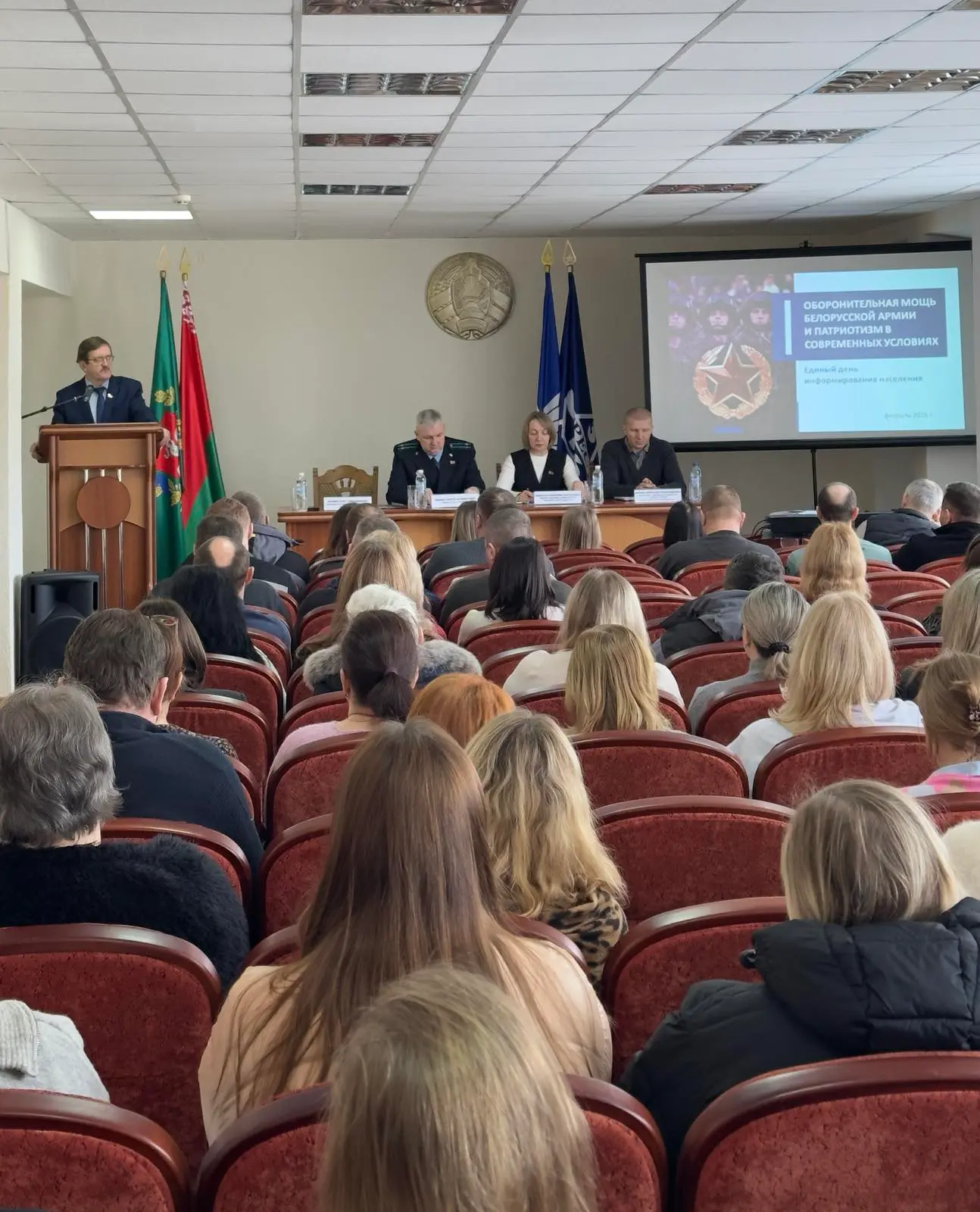 Освещая основную тему Единого дня информирования, он рассказал о роли Вооруженных Сил Республики Беларусь в системе обеспечения национальной безопасности нашей страны, защите от внешних и внутренних угроз, а также о патриотическом воспитании подрастающего поколения через деятельность военно-патриотических клубов, также спикер сделал акцент на участии каждого гражданина в сохранении мира и безопасности Беларуси.